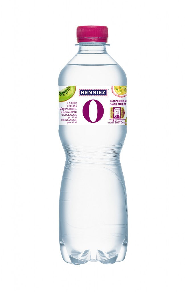 Natürliches Henniez-Mineralwasser, Kohlensäure, Fruchtsäfte (5% weisser Traubensaft aus Konzentrat), Fruktose, Säuerungsmittel: Zitronensäure, natürliche Passionsfrucht- und Kiwiaromen, Antioxydans: Ascorbinsäure.